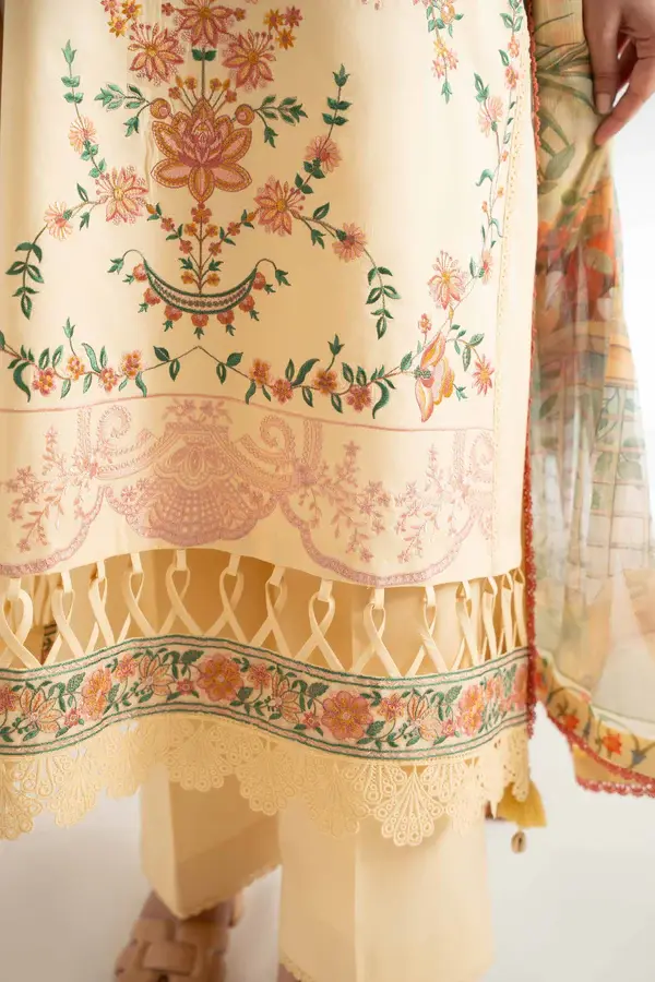 Embroidered Solid Cambric Shirt Front: 1 Piece