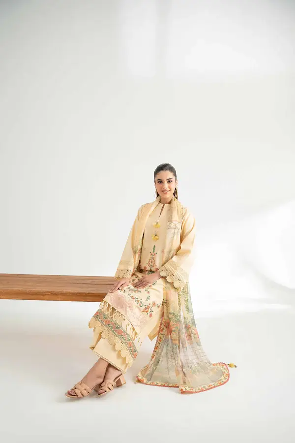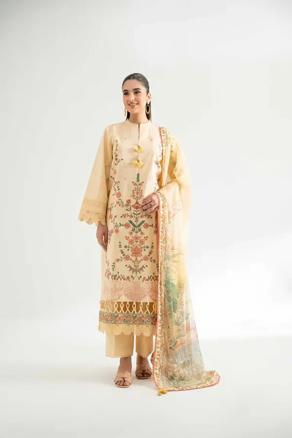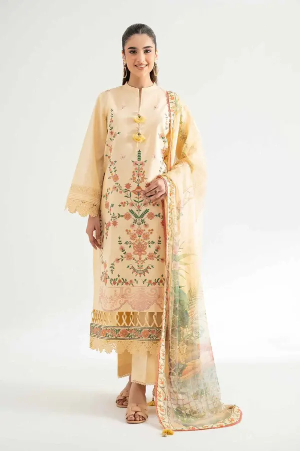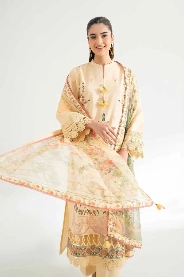 Vintage Floral Style Shirt with Dupatta & Trousers