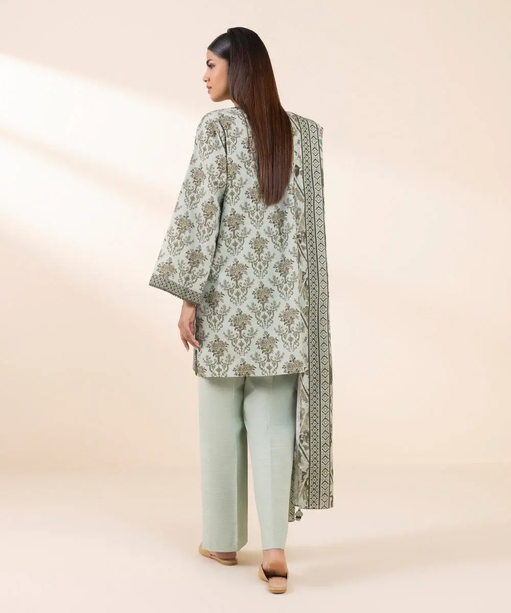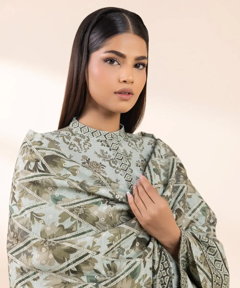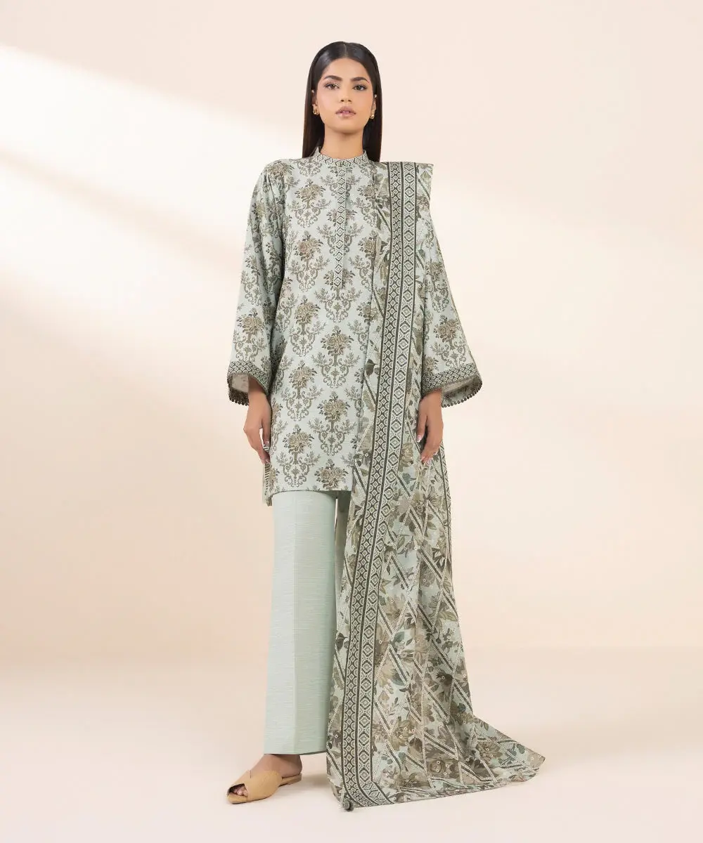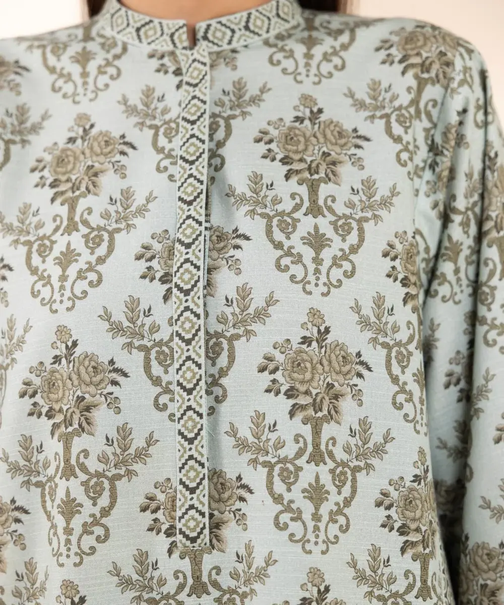 Perfect your winter style with our printed two-piece ensemble in Tea Pink featuring a printed khaddar shirt with dupatta.