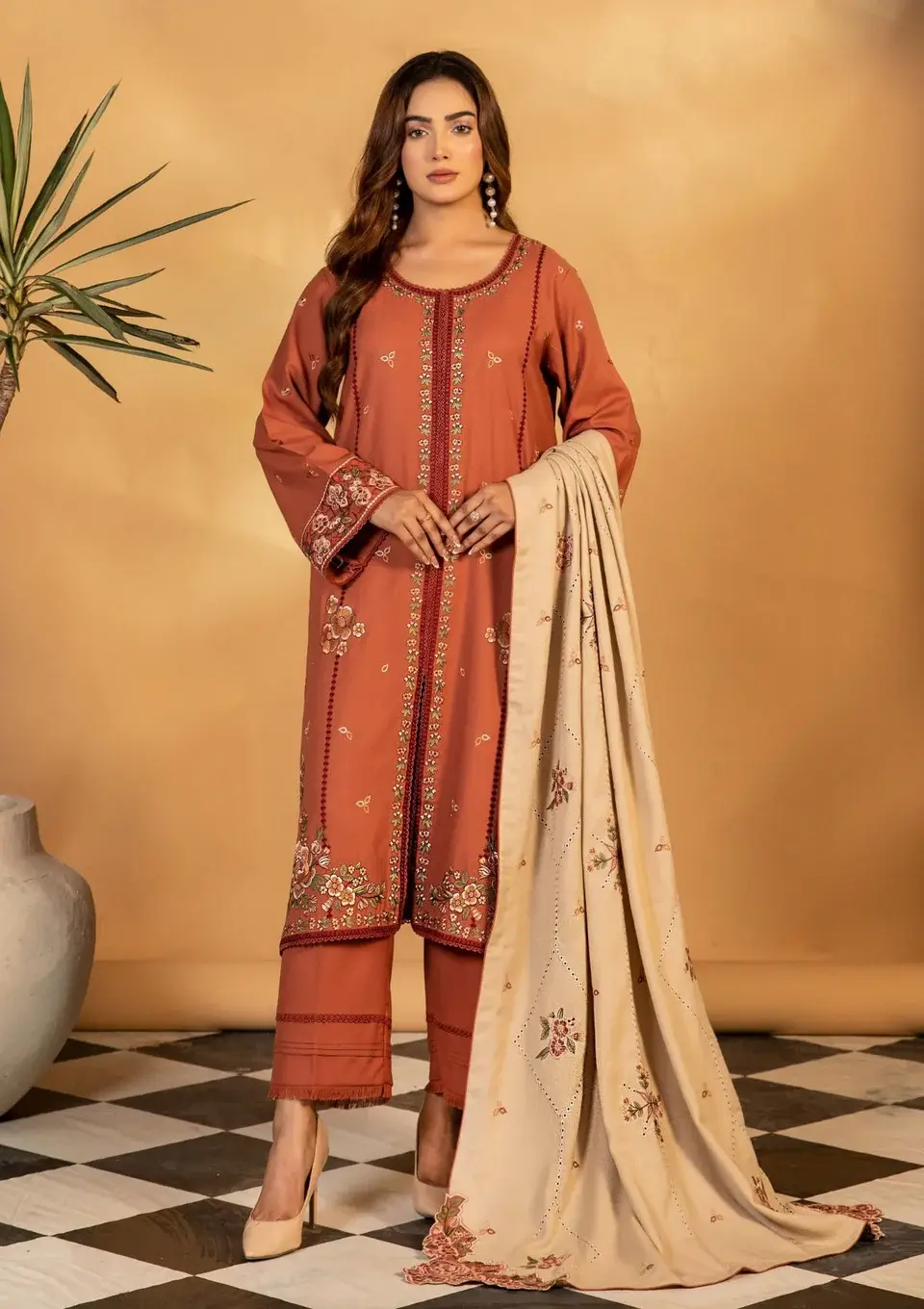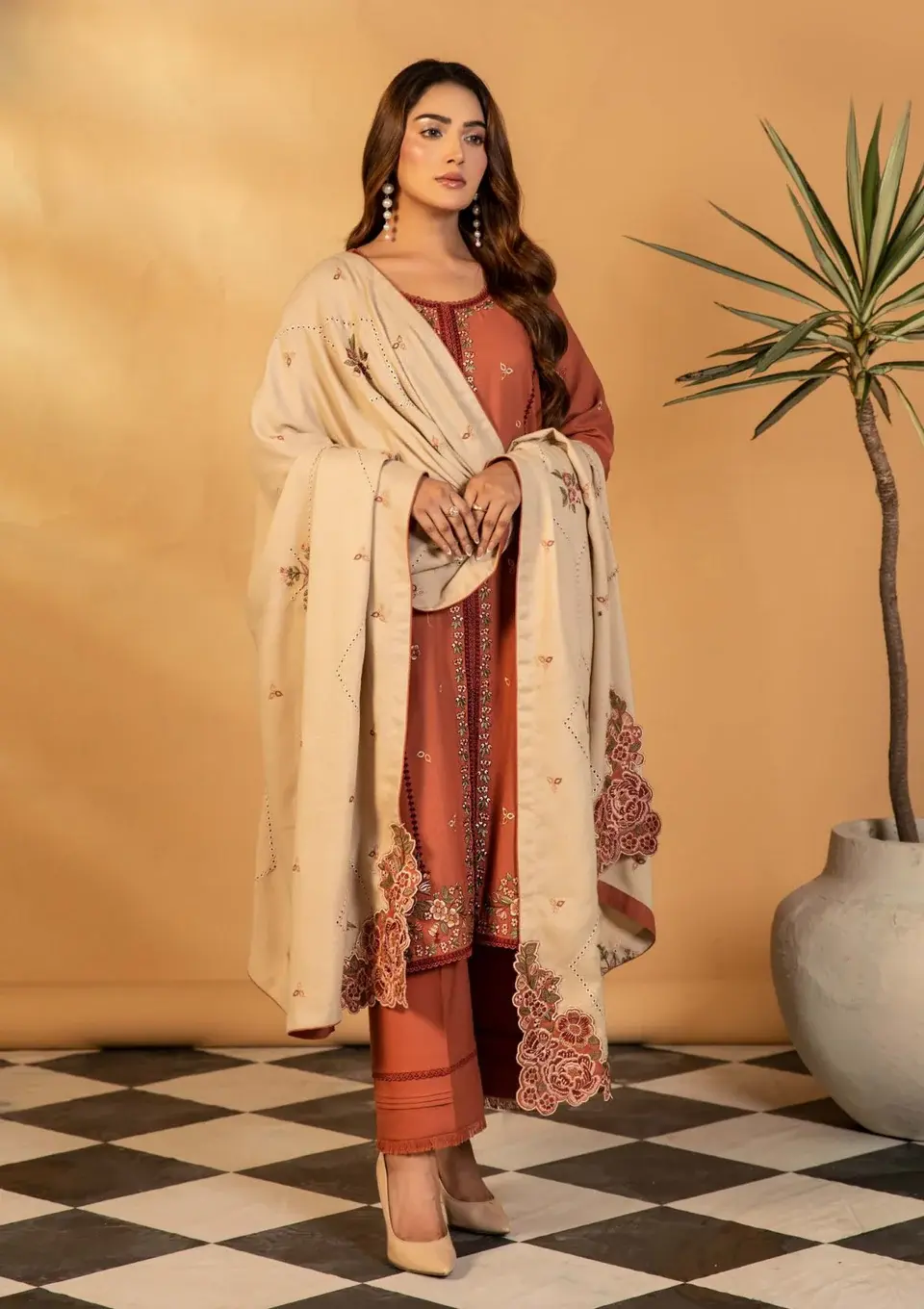 Dhanak Shirt Dhanak Trouser With  Ready To Wear Wool Shawl